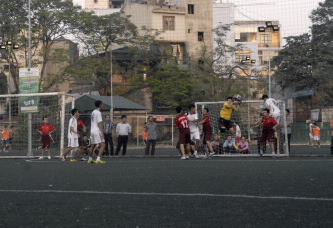 Đội Vietcombank vây ép khung thành đội Vietinbank với mong muốn tìm kiếm bàn thắng gỡ hòa