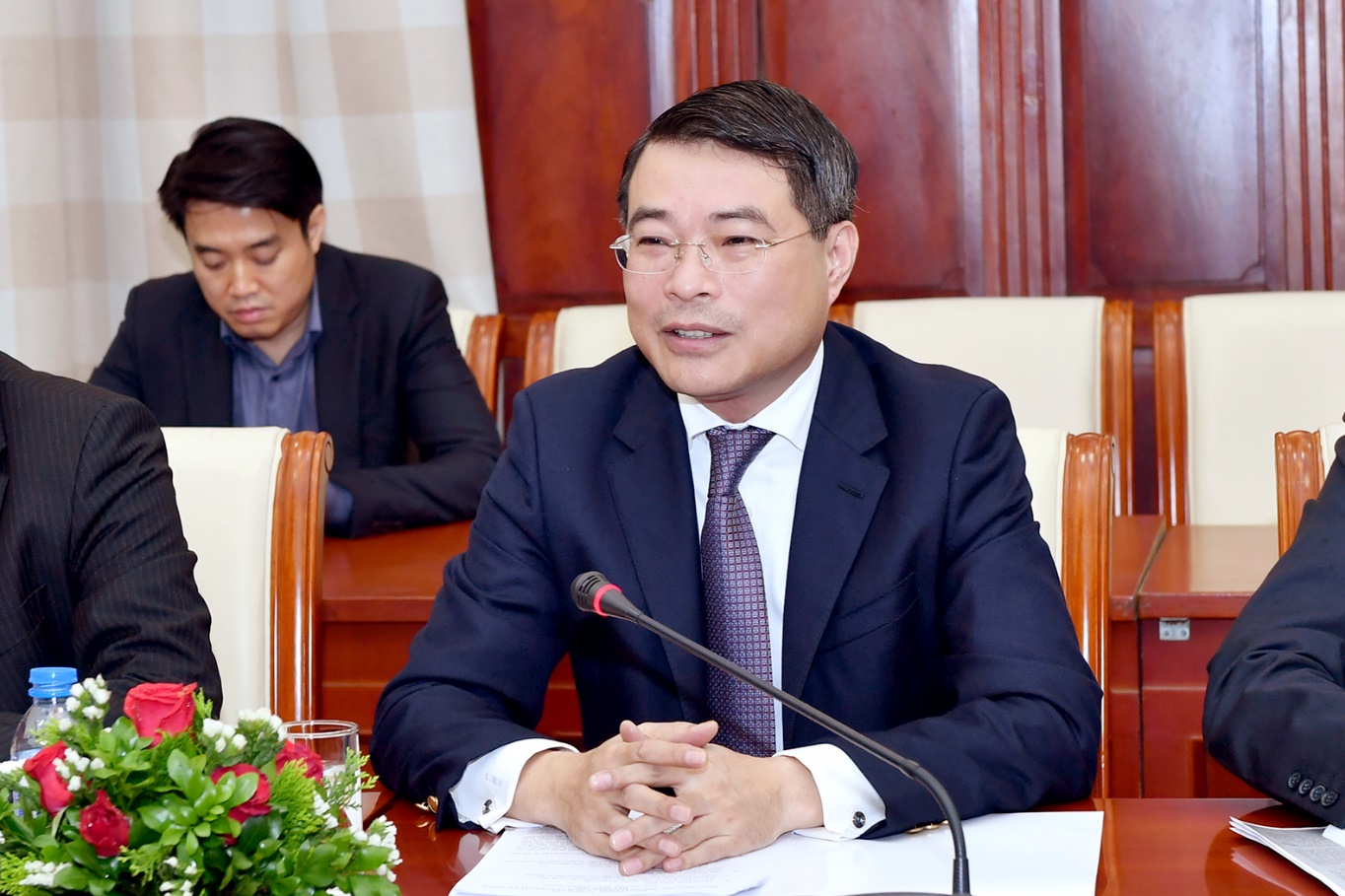 Thống đốc NHNN Lê Minh Hưng trao đổi tại buổi làm việc