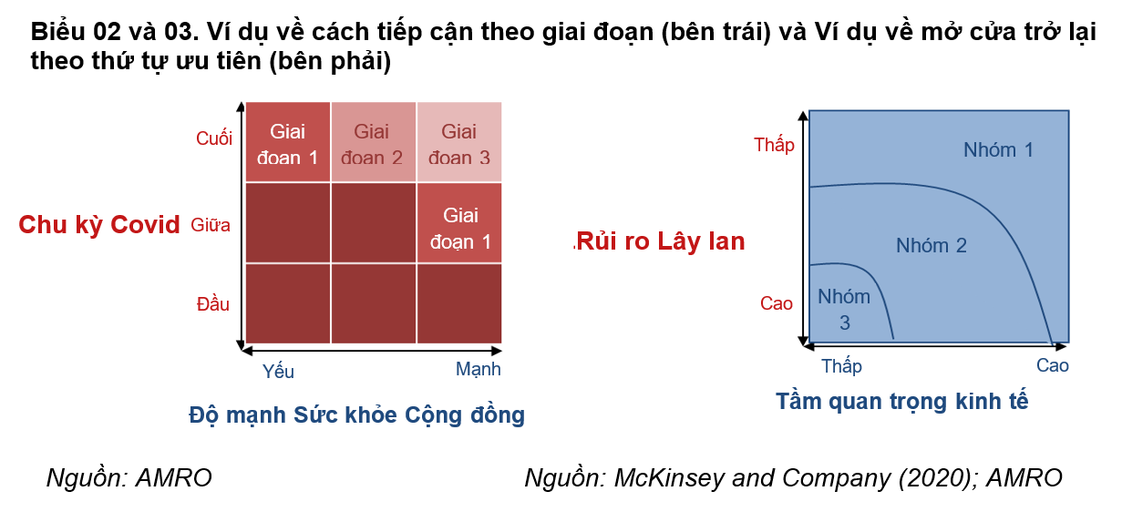 Các biện pháp ứng phó đã cho thấy hiệu quả trong kiểm soát sự lây lan của vi rút và việc nới lỏng giãn cách đã dần được thực hiện trong khu vực. Chỉ số Stringency Index (chỉ số đo lường mức độ nghiêm ngặt của chính sách phong tỏa do Đại học Oxford xây dựng) cho thấy các biện pháp ứng phó được các chính phủ triển khai đã giúp làm chậm sự lây lan của dịch bệnh. Nhờ đó, một số nước đã dần nới lỏng các biện pháp hạn chế và từng bước mở cửa lại nền kinh tế, đảm bảo cân bằng giữa khởi động lại nền kinh tế và ứng phó dịch bệnh. Tuy nhiên, khi chưa có vắc-xin, việc dỡ bỏ các biện pháp ngăn chặn một cách thiếu kiểm soát có thể mang tới rủi ro lớn cho cả sức khỏe của người dân lẫn hoạt động của nền kinh tế vốn đang gặp nhiều khó khăn.