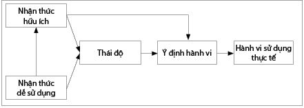Mô hình TAM được đề xuất bởi Davis (1986) nhằm dự đoán khả năng chấp nhận của người sử dụng đối với các ứng dụng công nghệ. Đồng thời, mô hình cũng giúp xác định xem các sửa đổi nào cần phải được thực hiện để người sử dụng chấp nhận các ứng dụng công nghệ này. Mô hình này cho thấy quyết định sử dụng một ứng dụng công nghệ của người tiêu dùng được xác định bởi 02 yếu tố là Nhận thức hữu ích và Nhận thức dễ sử dụng và thông qua 02 yếu tố trung gian là Thái độ và Ý định hành vi. (Hình 2)