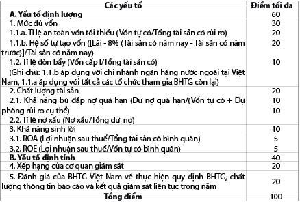 Bảng 1: Các tiêu chí định lượng và định tính trong đề xuất cho hệ thống phí BHTG phân biệt của Việt Nam