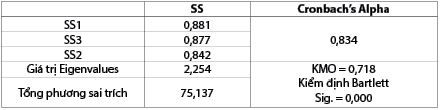 Kết quả phân tích EFA trích ra được 1 nhân tố đại diện cho 3 biến quan sát trong các thang đo tại giá trị Eigenvalues là 2,254 lớn hơn 1.