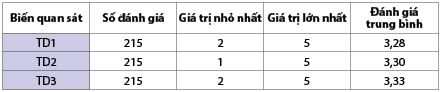 Nhân tố 3: Bao gồm các biến quan sát TD2, TD3, TD1. Đặt tên cho nhân tố này là TD, đại diện cho nhân tố thái độ.