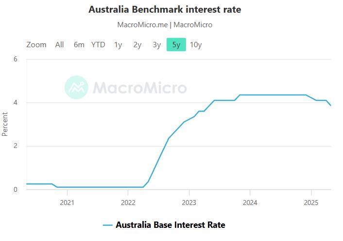 Ngày 20/5, Ngân hàng Dự trữ Úc (RBA) - Ngân hàng Trung ương của Úc - đã giảm lãi suất tham chiếu 0.25 điểm phần trăm lần thứ hai trong năm nay, xuống còn 3,85% sau khi lạm phát giảm trong phạm vi mục tiêu.