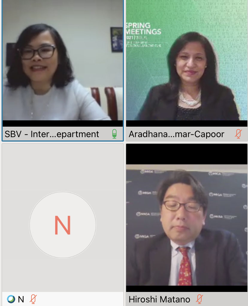 Ngày 7/4/2021, giờ Việt Nam, đoàn đại biểu Việt Nam - do đại diện Ngân hàng Nhà nước Việt Nam (NHNN) làm Trưởng đoàn cùng với sự tham gia của đại diện Bộ Tài chính, Bộ Công Thương và Bộ Giao thông Vận tải - đã có buổi làm việc với Cơ quan Bảo lãnh Đầu tư Đa biên (MIGA) thuộc Nhóm Ngân hàng Thế giới. Đây là sự kiện trong khuôn khổ Hội nghị mùa Xuân của Quỹ tiền tệ quốc tế/Ngân hàng Thế giới (IMF/WB) năm 2021.