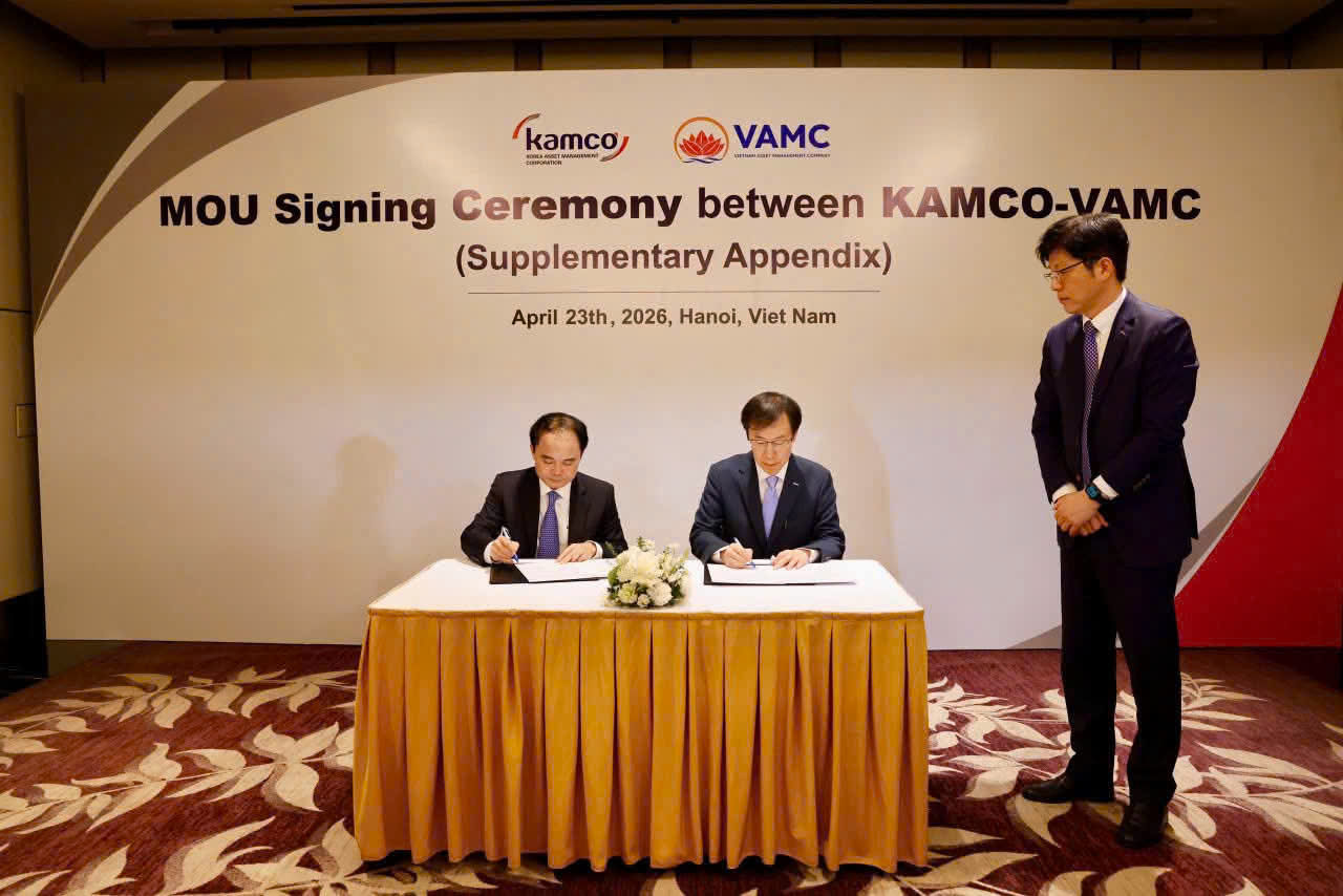 Sáng ngày 23/4, tại Hà Nội, Công ty trách nhiệm hữu hạn một thành viên Quản lý tài sản của các tổ chức tín dụng Việt Nam (VAMC) và Tổng công ty Quản lý tài sản Hàn Quốc (KAMCO) đã chính thức ký kết Biên bản ghi nhớ (MOU), kế thừa nền tảng hợp tác từ năm 2019. Sự kiện đánh dấu bước tiến quan trọng trong quan hệ hợp tác song phương giữa hai tổ chức hàng đầu trong lĩnh vực xử lý nợ xấu của Việt Nam và Hàn Quốc.