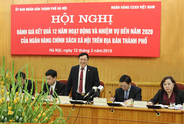 Ngày 12/3/2015, Ngân hàng Chính sách xã hội (NHCSXH) và UBND thành phố Hà Nội đã tổ chức Hội nghị nhằm đánh giá kết quả 12 năm hoạt động và nhiệm vụ đến năm 2020 của NHCSXH chi nhánh thành phố Hà Nội.
