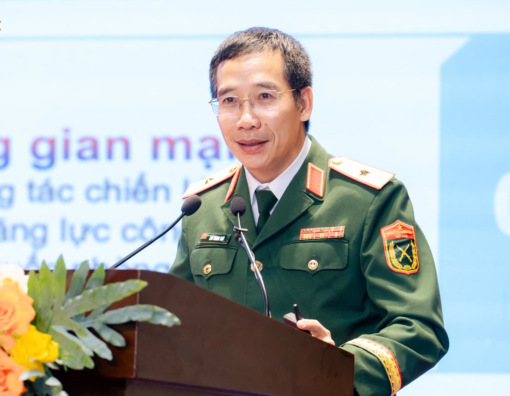 Thiếu tướng Lưu Trung Thái - Bí thư Đảng ủy, Chủ tịch HĐQT MB phát biểu tại Hội nghị