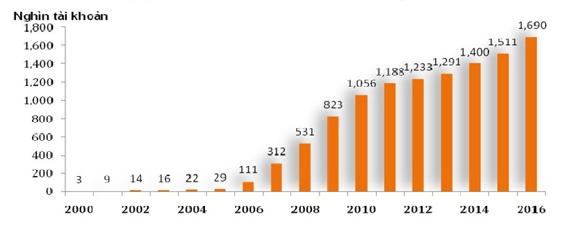 Hình 3: Số lượng tài khoản của nhà đầu tư giai đoạn 2000 -2016 (Nguồn: UBKNN)