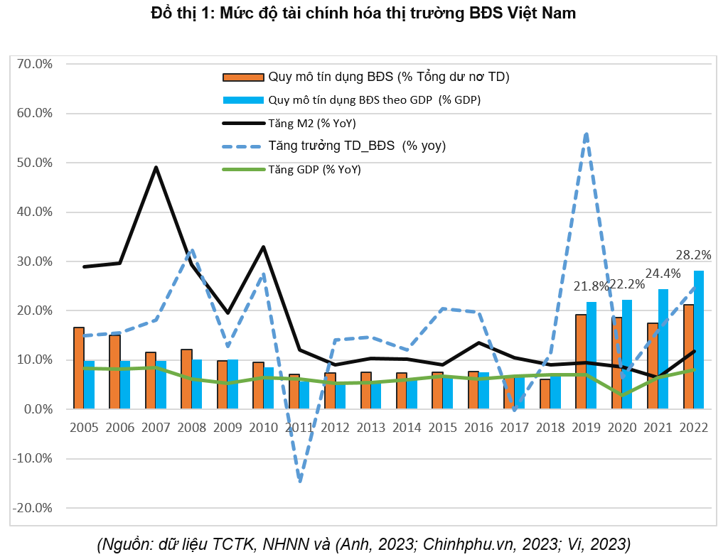 Hiện tại, thị trường bất động sản cho nhà ở (BĐS) tại Việt Nam được đánh giá là có vai trò quan trọng. BĐS nhà ở là ngành đang đóng góp 11% GDP, có quan hệ mật thiết với nhiều ngành nghề, tạo ra nhiều việc làm (A. Minh, 2023). Cái nhìn lịch sử ở Việt Nam cho thấy khu vực BĐS nhà ở sau một số năm bùng nổ, nhiều doanh nghiệp gia tăng huy động vốn cho đầu tư BĐS, làm ăn rất có lãi (Anh, 2023). Tuy nhiên, tại thời điểm đầu năm 2023, thị trường BĐS được nhận định là gặp khó khăn, ách tắc về dòng tiền và các vấn đề về pháp lý liên quan (T. Minh, 2023). Ngành ngân hàng (bao gồm cơ quan lập chính sách và ngân hàng thương mại) đang trước áp lực, yêu cầu tháo gỡ khó khăn về tài chính BĐS nhà ở như tăng thêm tín dụng, haạ lãi suất (A. Minh, 2023). Trong khi mức dư nợ cho vay BĐS đã khá cao gần 30% GDP và mục tiêu của chính sách tiền tệ (CSTT) là duy trì ổn định kinh tế vi mô (như kiềm chế lạm phát, ổn định tài chính...).