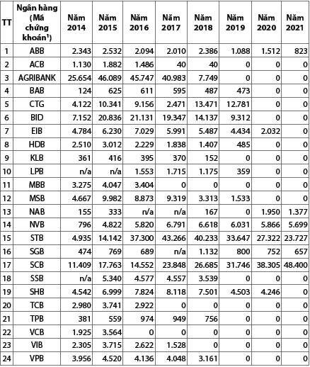 Nguồn: Tổng hợp từ báo cáo tài chính của 24 NHTM Việt Nam giai đoạn 2014 - 2021