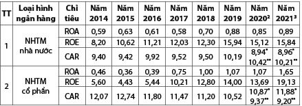 Bảng 2: Một số chỉ tiêu hoạt động của các NHTM Nhà nước và NHTM cổ phần của Việt Nam giai đoạn 2014 - 2021