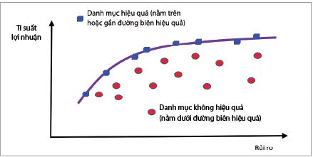 Các NHTM có thể áp dụng đường biên hiệu quả để quản trị RRTD đối với danh mục cho vay. Đường biên hiệu quả là đường tập hợp tất cả các danh mục cho vay mà kết quả là dành được tỉ suất lợi nhuận tối đa đối với tất cả mức rủi ro có thể xảy ra, hoặc có thể đạt được rủi ro tối thiểu đối với tất cả mức tỉ suất lợi nhuận kì vọng. Những danh mục cho vay được xem là có hiệu quả khi chúng nằm trên đường biên hiệu quả; ngược lại, đối với những danh mục cho vay nằm dưới đường biên này được xem là không hiệu quả (Hình 3). Để đạt được hiệu quả trong quản trị RRTD, các NHTM cần phải duy trì danh mục cho vay nằm trên đường biên hiệu quả - thông qua tính toán sự đánh đổi giữa tỉ suất lợi nhuận và rủi ro khi tăng hoặc giảm các khoản vay trong danh mục; bất kì một khoản vay nào, nếu sự hiện diện của chúng trong danh mục làm cho danh mục nằm dưới đường biên hiệu quả, chúng cần được xem xét để chuyển giao RRTD cho các đối tác khác (Saunders và Allen, 2010). Tuy nhiên, việc áp dụng đường biên hiệu quả đối với danh mục cho vay thường gặp phải một số trở ngại trong thực tiễn; tiếp cận ban đầu về đường biên hiệu quả được thực hiện đối với chứng khoán vốn bởi Markowitz (1952) khi đưa ra lí thuyết danh mục hiện đại; trong nghiên cứu này, tác giả cho thấy tỉ suất lợi nhuận kì vọng và rủi ro có đặc tính là hàm phân phối chuẩn - hình dạng của hàm phân phối là đối xứng. Trong khi đó, hàm phân phối xác suất đối với RRTD của danh mục cho vay thường bất đối xứng. Ngoài ra, việc xác định mức đóng góp về giá trị tăng thêm, cũng như rủi ro của mỗi khoản vay hoặc nhóm khoản vay đối với danh mục phụ thuộc vào phân phối tổn thất của danh mục cho vay có liên quan đến tần suất vỡ nợ; nhưng để xác định được chính xác phân phối tổn thất này trong thực tế là khá khó khăn (Colquitt, 2007; Saunders và Allen, 2010).