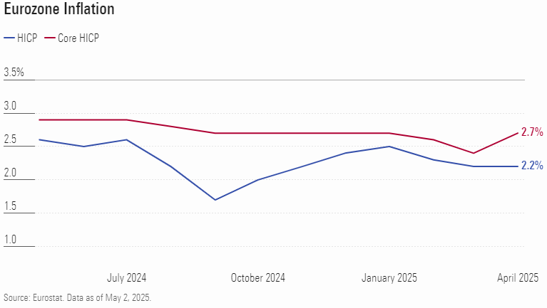 “Lạm phát tại châu Âu giữ nguyên ở mức 2,2% trong tháng 4/2025, cao hơn dự báo nhưng vẫn gần với mục tiêu của Ngân hàng Trung ương châu Âu (ECB)”, ông Michael Field - chiến lược gia trưởng về thị trường cổ phiếu châu Âu tại Morningstar nhận định. Tuy nhiên, “bất kỳ sự yên tâm nào vào thời điểm này cũng rất mong manh” do rủi ro từ thuế quan của Mỹ.