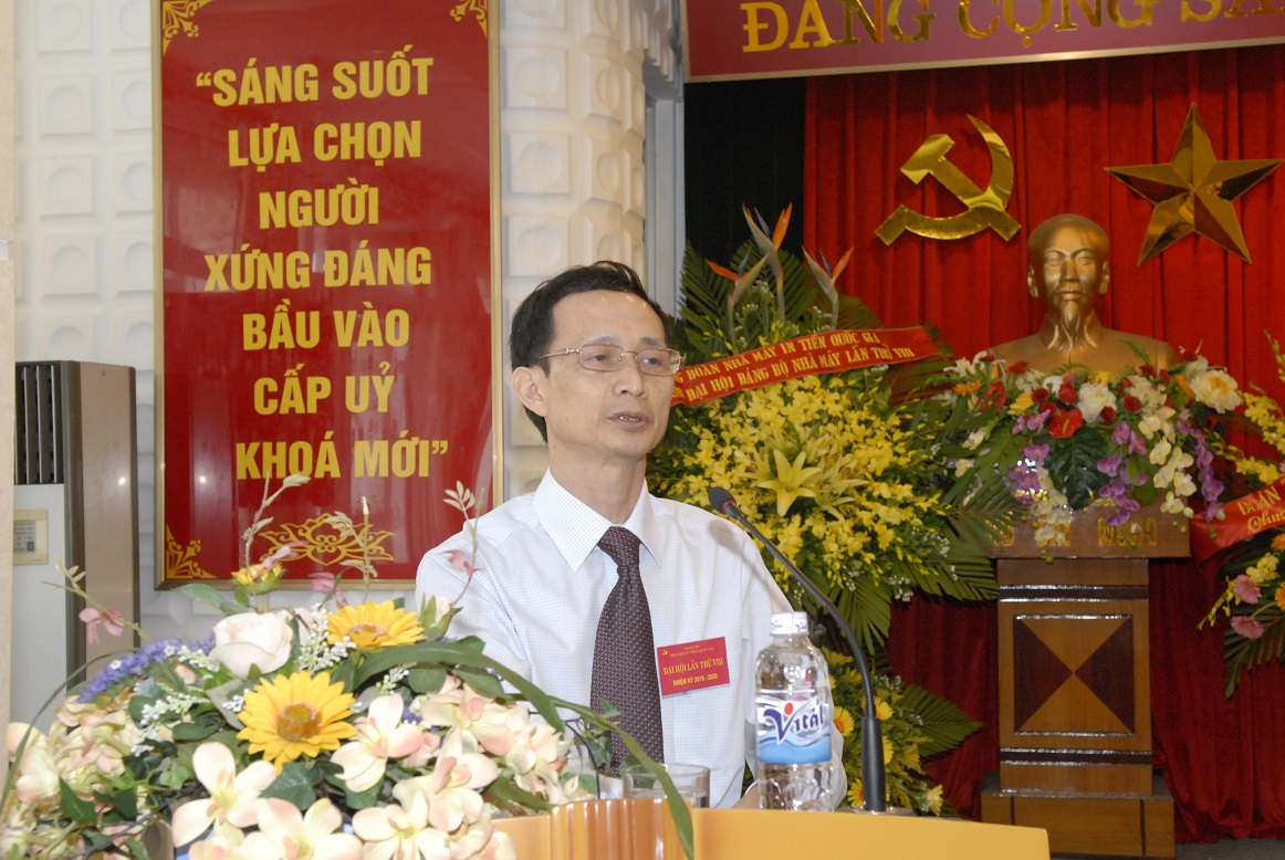 Phát biểu tại Đại hội, đ/c Trần Việt Bắc - Ủy viên Ban Thường vụ Đảng ủy Cơ quan NHTW đánh giá cao hoạt động của Đảng bộ Nhà máy In tiền quốc gia nhiệm kỳ 2010 - 2015. Đặc biệt là trong lĩnh vực lãnh đạo, chỉ đạo Nhà máy phấn đấu hoàn thành xuất sắc nhiệm vụ chính trị được giao, điển hình là việc sản xuất tiền được thực hiện theo đúng kế hoạch được NHNN giao cả về số lượng và chất lượng sản phẩm; thực hành tiết kiệm trong sản xuất, đầu tư đổi mới công nghệ, quản trị điều hành của Nhà máy. Trong công tác Đảng, Đảng bộ Nhà máy đã duy trì tốt sự đoàn kết, thống nhất trong toàn Đảng bộ, thực hiện tốt công tác vận động cán bộ, đảng viên và người lao động phấn đấu hoàn thành tốt nhiệm vụ chính trị. Các chi bộ thuộc Đảng bộ Nhà máy đã có nhiều sáng kiến đổi mới trong việc thực hiện học tập và làm theo tấm gương đạo đức Hồ Chí Minh; thực hiện tốt công tác tự phê bình và phê bình trong Đảng. Công tác kiểm tra, giám sát Đảng có nhiều chuyển biến tích cực; chất lượng sinh hoạt Chi bộ được nâng cao, có nhiều chuyển biến tốt…