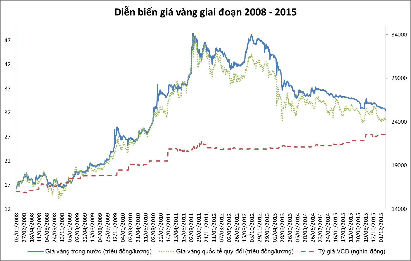 Trong giai đoạn này, vàng miếng được sử dụng với ba mục đích, vừa làm công cụ đầu tư, vừa làm phương tiện thanh toán và cất trữ; mỗi khi thị trường vàng biến động làm giá vàng trong nước cao hơn giá vàng thế giới vài trăm nghìn đồng/lượng, thường xuyên xuất hiện tình trạng đầu cơ, nhập lậu vàng qua biên giới với khối lượng lớn, gây bất ổn đến tỷ giá, thị trường ngoại hối và sự ổn định kinh tế vĩ mô. (Xem biểu đồ 1).